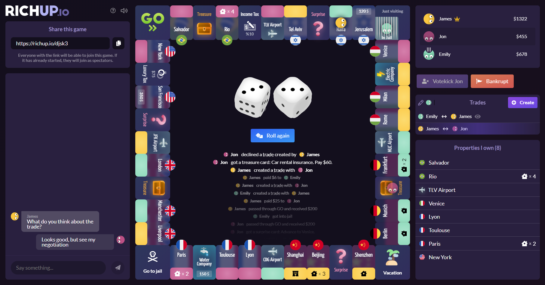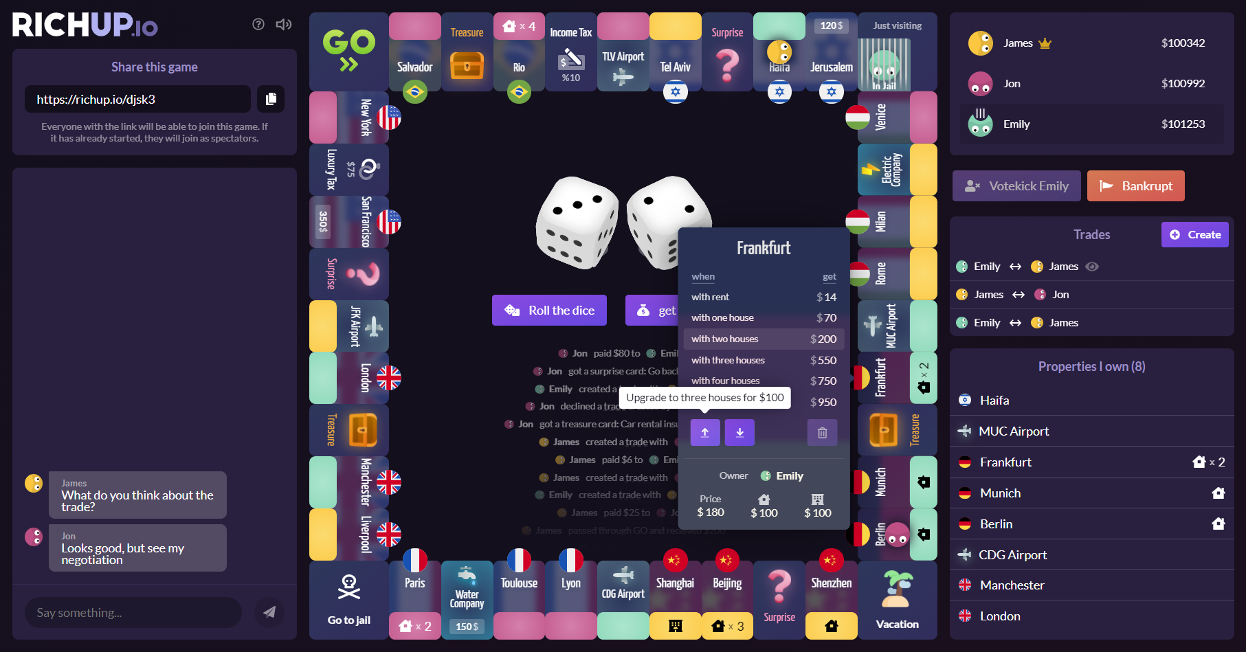 richup.io is so cool! it's monopoly but you can play with your friends n' stuff online! definitely recommend